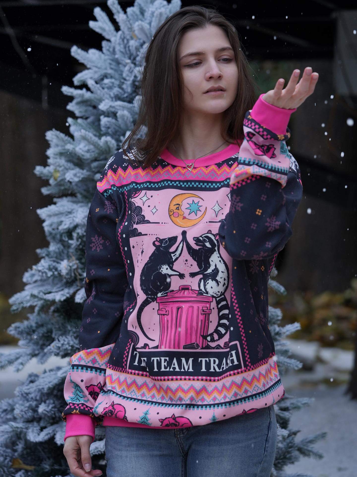 Although this shirt is supposed to fit into the "ugly sweater" category, it is really cute, and I look forward to wearing it during the holidays. It is made of high quality fabric, and the construction is excellent. The shirt is colorful and festive. It is easy to launder. This would make a fun gift for friends and family.