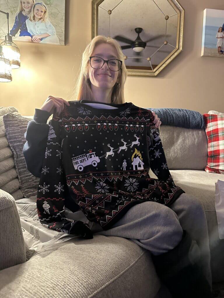 I truly adore this "ugly" Christmas sweater. It has a charming and extravagant quality that I find very appealing. The sweater is comfortable, though it is a bit thin. It fits true to size and is stretchy, so if you order your usual size, you should still be able to wear something beneath it to stay warm. Overall, I believe it is a wonderful, high-quality, cute, and enjoyable sweater, perfect for an "ugly" Christmas sweater party this holiday season.